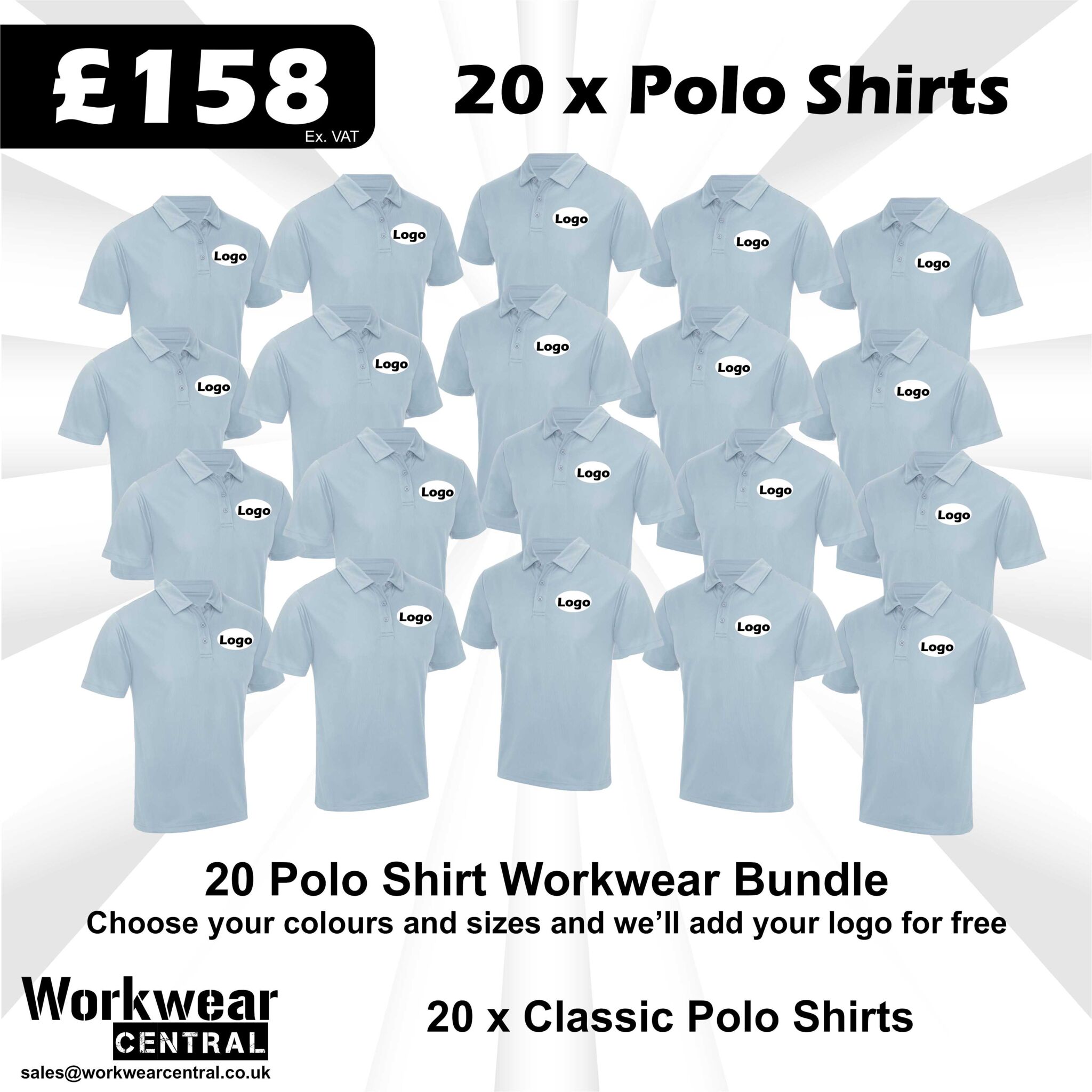 Check out our amazing value deals. Each bundle includes your logo embroidered or printed to the left chest and all delivery and setup charges.